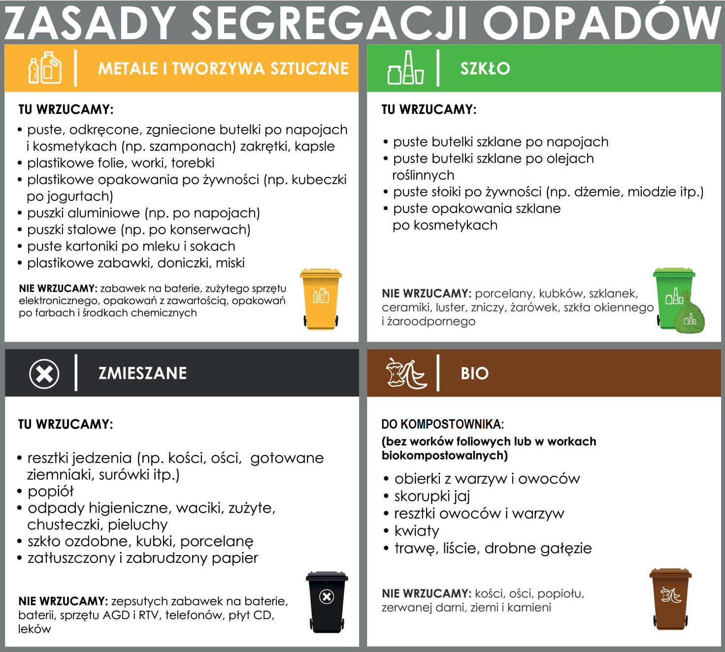 Przypominamy o obowiązku segregacji odpadów. W przypadku ujawnienia niewłaściwego składowania odpadów w pojemnikach do tego nie przeznaczonych, spółka URBIS może nałożyć karę, ktora obciąży kosztami wszystkich Dzialkowców. Dodatkowo przypominamy, że odpady bio należy składować na kompostownikach przygotowanych na terenie swoich ogródków.